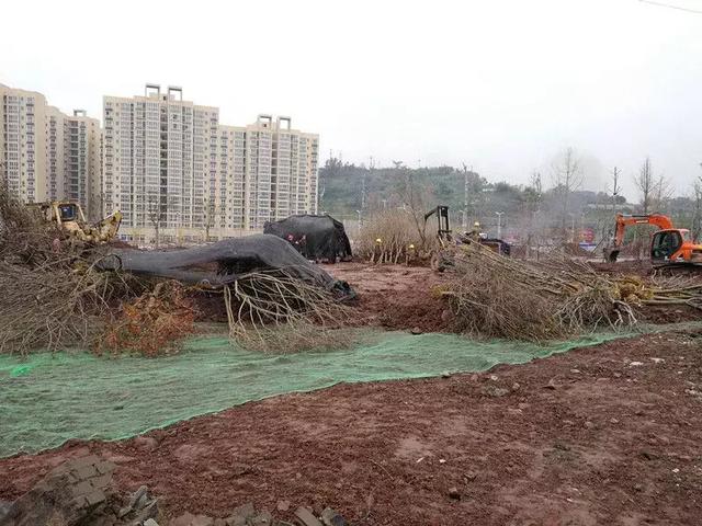 11月24日上午,笔者走进建设工地,直观建设场面;来到建设者中,了解施工情况。在凤凰大道西段铁路桥旁,往日搭建的房屋被拆除,高矮不平的山梁被削低,难见过去模样;挖掘机、装载机、推土机、运土车等大型机械设备紧张作业;小型挖机挖树坑、吊车运送绿化树。来自成都温江的赵先生指挥现场人员栽植树木,对于哪些品种,他一时说不过来,干脆让笔者拍下已到并在栽植树木的品种和数量,涉及日本早樱、日本晚樱、紫叶矮樱、美人梅、榉树、银杏树、香樟、杜英、白玉兰、天竺葵、鹅掌楸等。