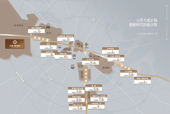 豪宅轴线交汇:项目地处成都主城 “三大豪宅价值轴线”的交汇处,这一地段基因决定了其天然的塔尖属性与深厚的价值共识,是城西改善置业的终极目的地之一。