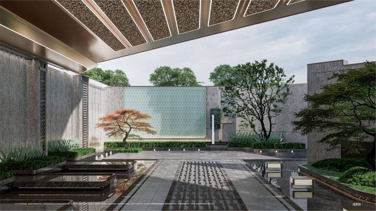园林景观以"蜀锦汝窑"为灵感,打造"馆藏五境"的游园体验:从入口的"落影橱窗"到中央的"浮光外廊",每一步都像是在艺术博物馆中穿行。特别值得一提的是,我们将苏州留园的移步换景手法与纽约现代艺术博物馆的动线设计相结合,让传统与现代在此碰撞出奇妙的火花。