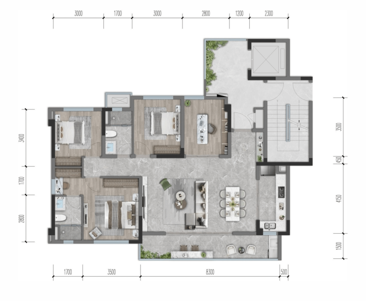 C户型 建面约141㎡ 四室两厅三卫
