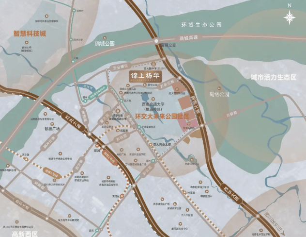 项目落位于连接金牛、国宾、犀浦等成熟板块的城西黄金走廊之上,这里不仅是城市向西发展的交通动脉,更是配套齐全、生活氛围浓厚的居住腹地,占据着“发展”与“成熟”的双重价值。