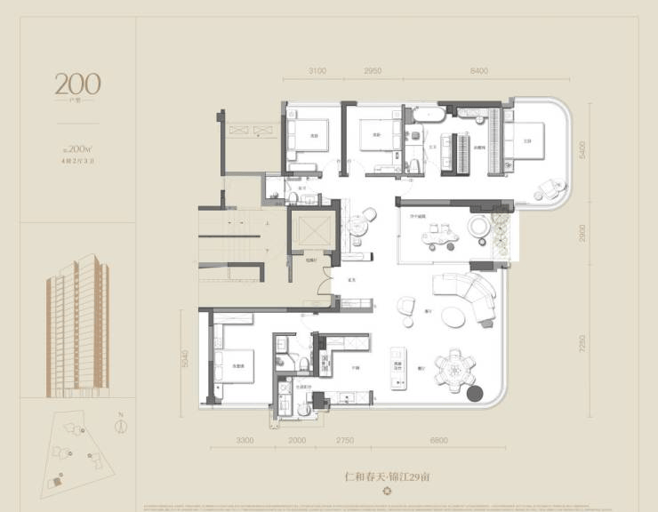200㎡四室两厅三卫双阳台
