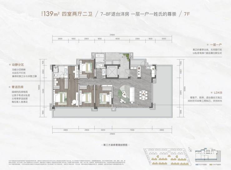 七楼139平实得面积290㎡,屋顶花园150㎡;