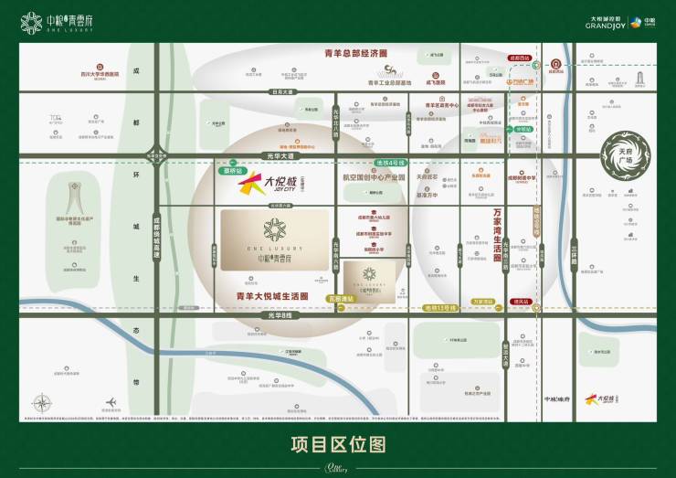主城青羊、三地铁、大悦城商业旗舰,坐拥泡小/树德/石室等全链名校、三甲医疗与生态公园,背靠航空新城高净值人群,是集商业中心、交通枢纽、优质教育、低密纯粹改善于一体的城西高端居住板块