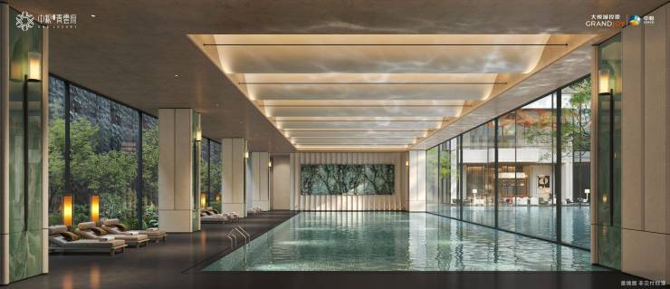 约14米通高青雲书阁、双面采光泳池、有氧/无氧健身馆、私宴厅、红酒雪茄吧,圈层社交主场