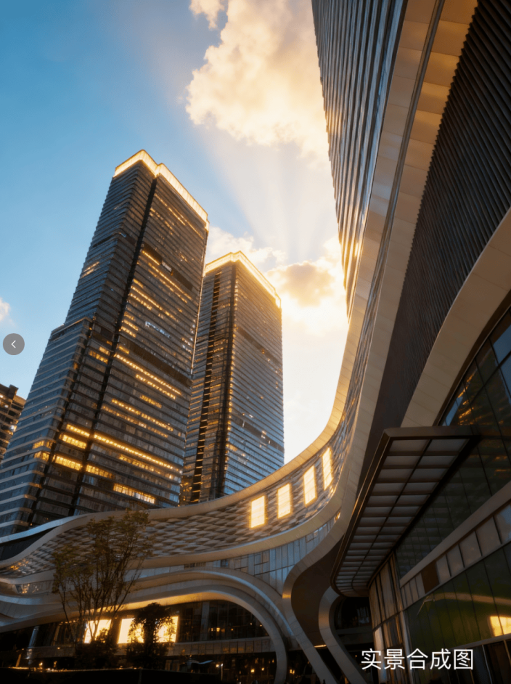 项目总面积约60万方,由两栋约243.9米超高层双子塔与两栋约199.9米塔楼组成,是集皇冠假日酒店、商业mall、企业总部大厦和天际云邸于一体的超级综合体。
