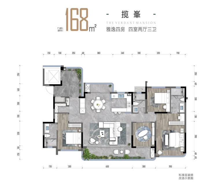 空间配置:143-185㎡阔绰户型,2梯2户花园入户