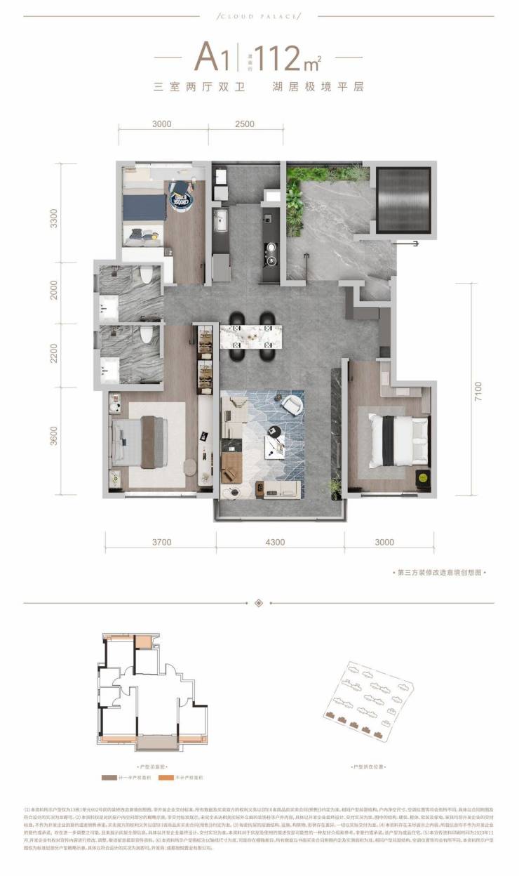 得房率优势:112㎡实得113㎡;128㎡实得133㎡;143㎡实得151㎡