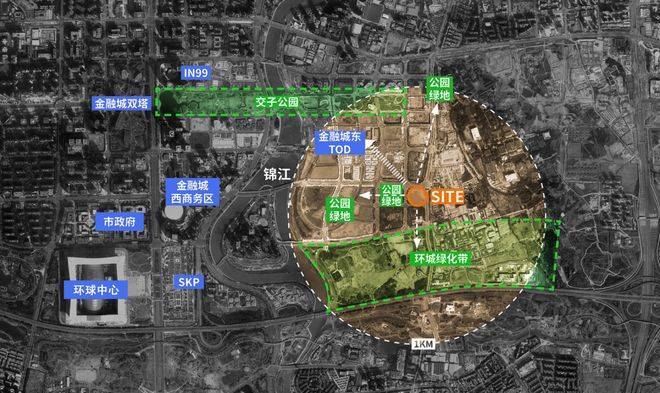 项目位于四川省成都金融城三期核心区,地块总面积约24亩,距地标双子塔仅2公里,周边汇聚七中育才学校(金融城校区)、交子公园等顶级配套。根据规划,项目容积率2.5,限高60米。