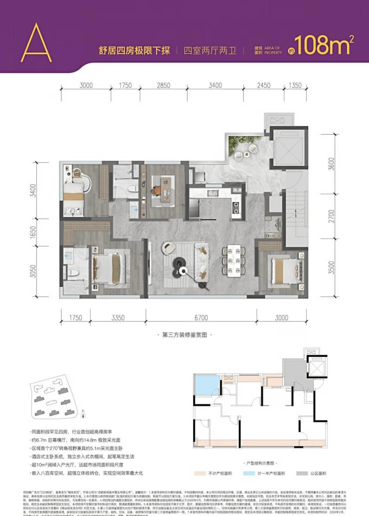 标准四房回归100㎡+,全景舱123㎡,进阶主城改善建面约108㎡-124㎡潮奢四房,得房率近120%+极致得房率,拉开成都四房差距