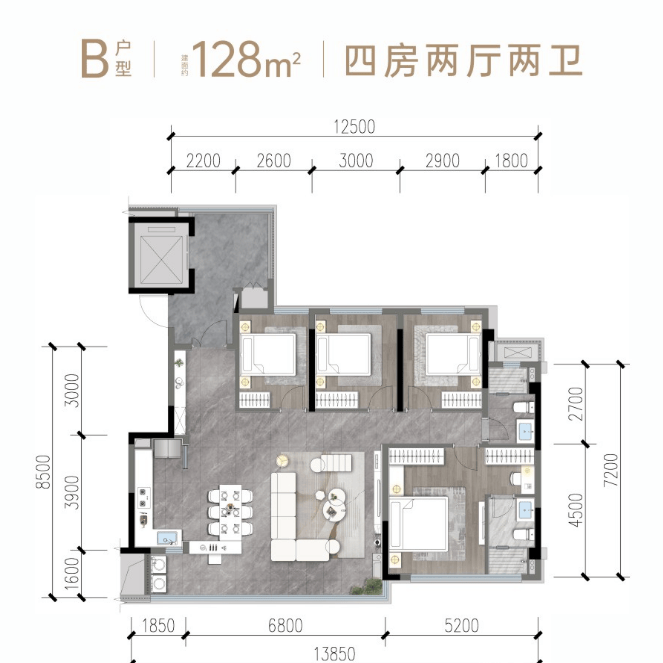 主力户型:128-143㎡(均配约12㎡入户花园)