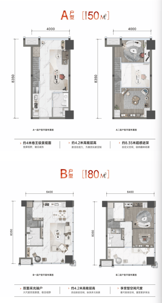 建面约50-80㎡ 4.2米跃变LOFT