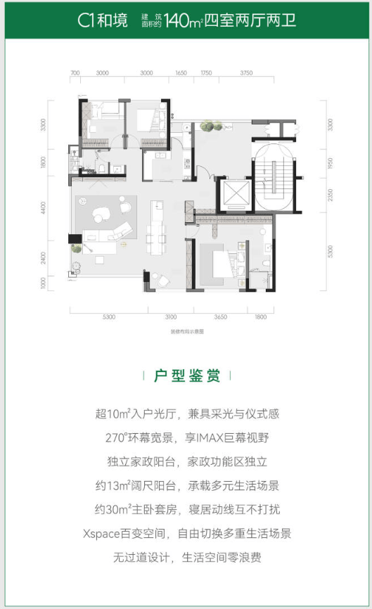 建面约136㎡/140㎡/143㎡ 宽境奢享四居室