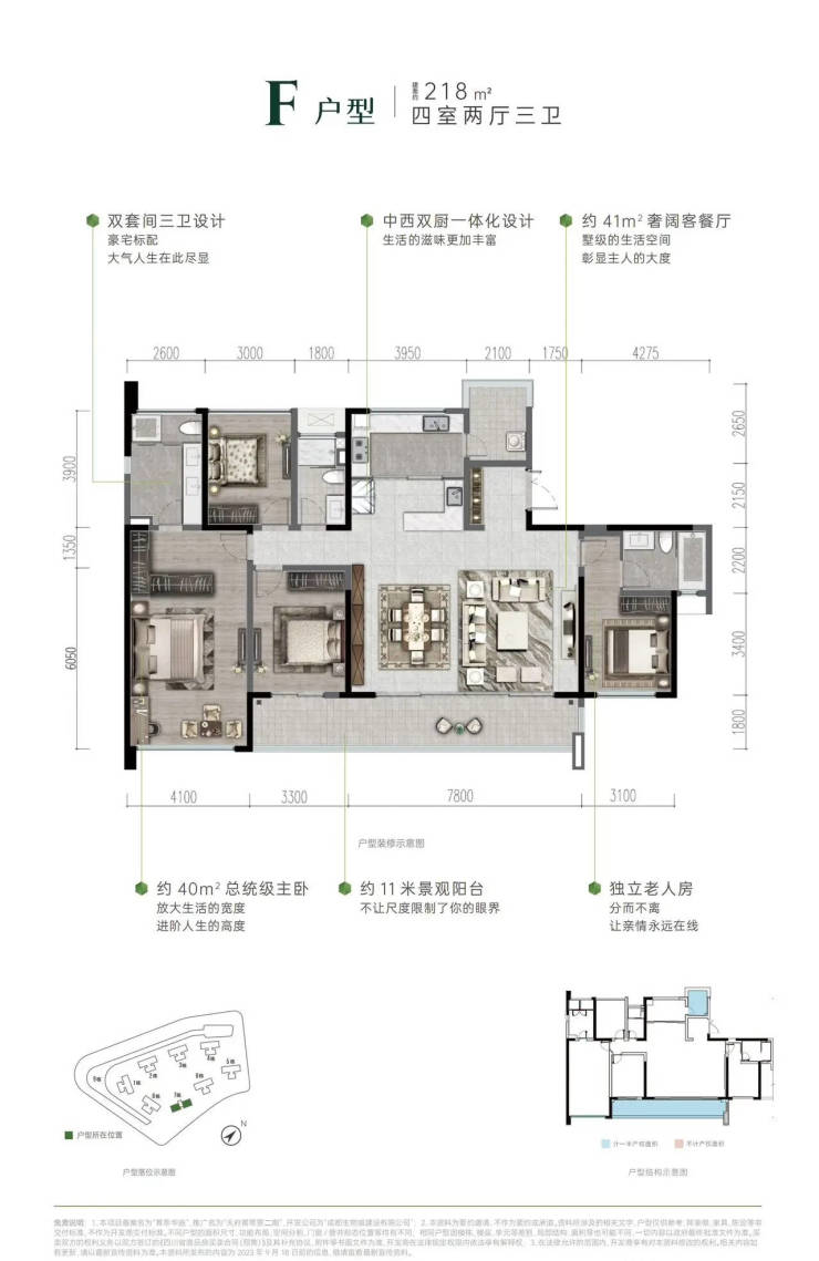 梯户配置:2梯4户(108-142㎡)、2梯2户(218㎡)、2梯3户(144㎡)