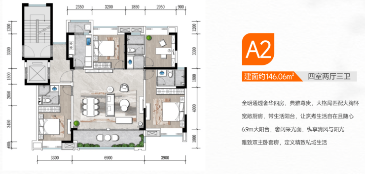 A2建面146.06㎡ 四室两厅三卫