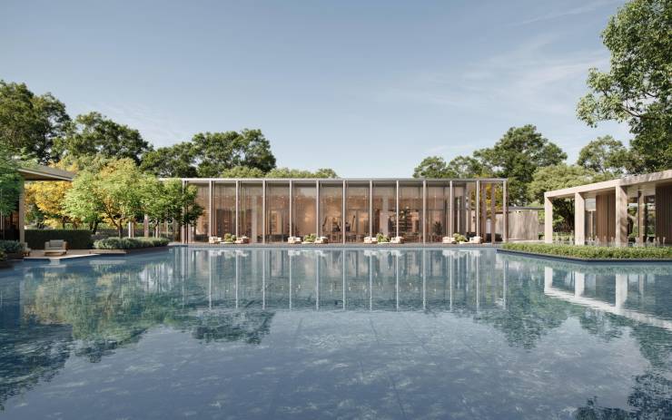 全球华人设计教父梁志天以水为主题的会所群落,以1500㎡中心水景贯穿庭院,蜿蜒串起三幢会所建筑,打造出繁华都市中极为稀缺的心灵栖息地与隐世桃源,满足业主餐饮社交、阅读时光、运动健康、疗愈放松、艺趣娱乐等多场景需求。