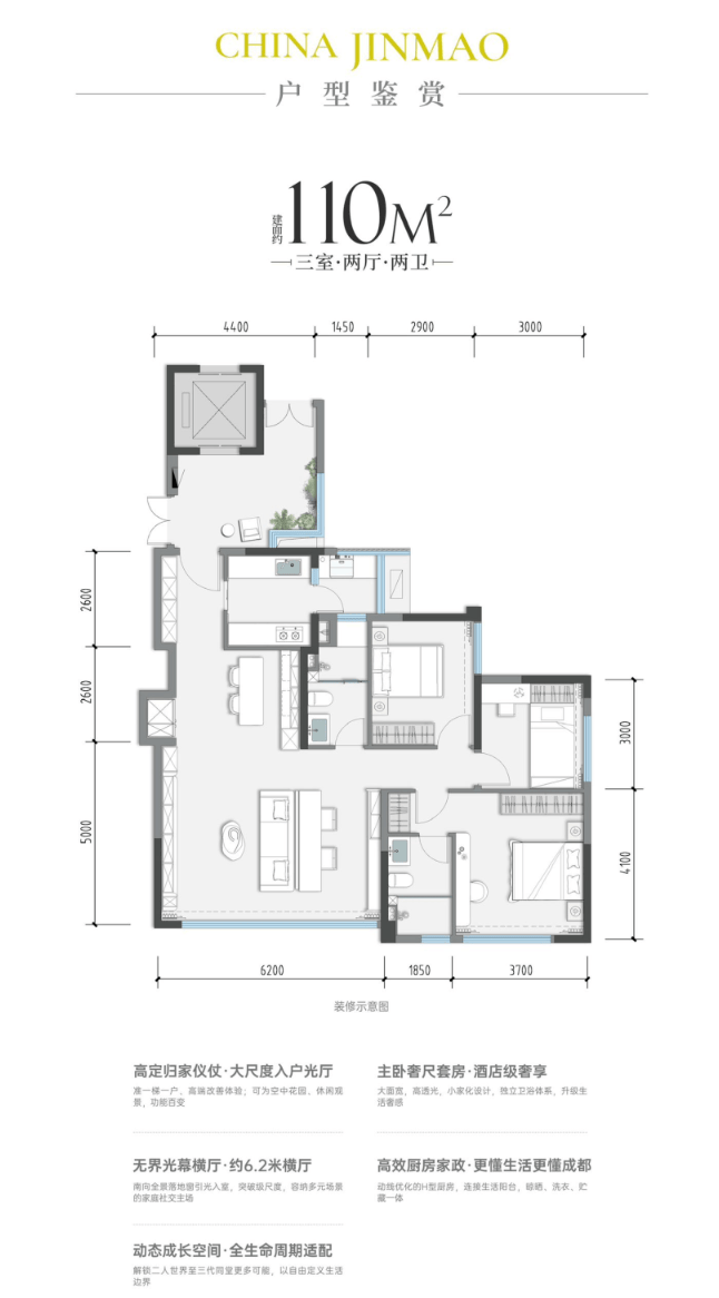 金茂晓棠主打建面约110-139㎡的品质住宅,户型设计秉承金茂一贯的精工标准,聚焦家庭生活场景,以科学的动静分区、良好的采光通风和人性化细节,承载现代家庭对舒适生活的全部想象。