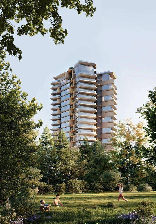 这一设计不仅提升了建筑的稳定性和安全性,更让绿意自架空层向上生长,通过空中花园垂直延伸,营造出一种仿佛置身于森林中的居住体验。