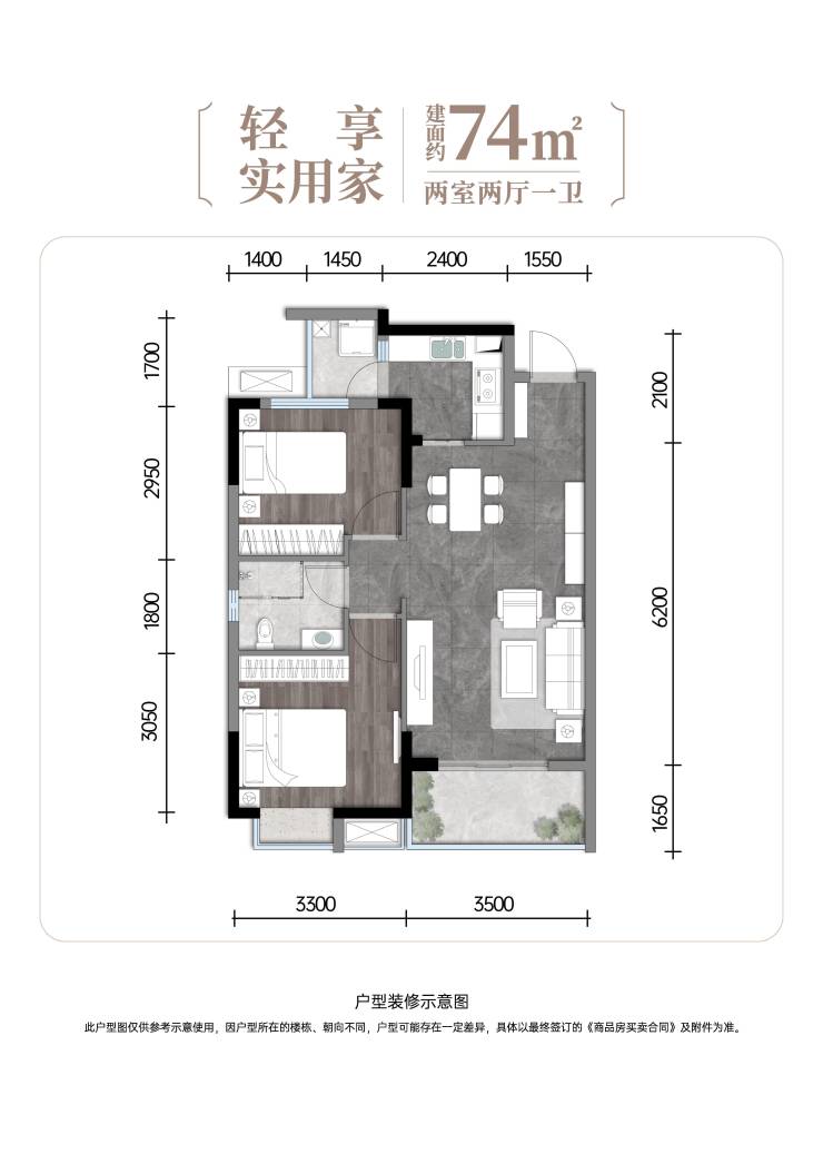 74㎡两室两厅户型,是轻享实用家的理想之选