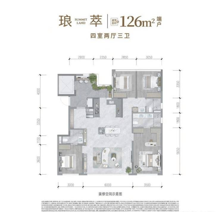 面积:126-140㎡新规精粹四房