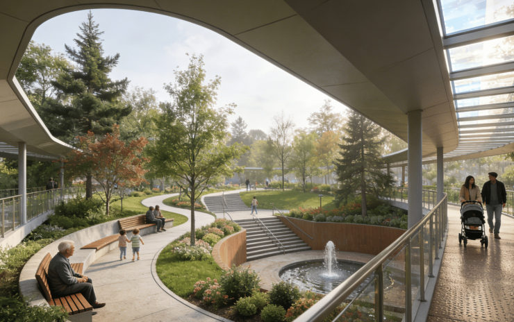 项目内部通常会设计遮风挡雨的步行通廊、主题公园、下沉庭院等,鼓励居民步行出行,减少对私家车的依赖。