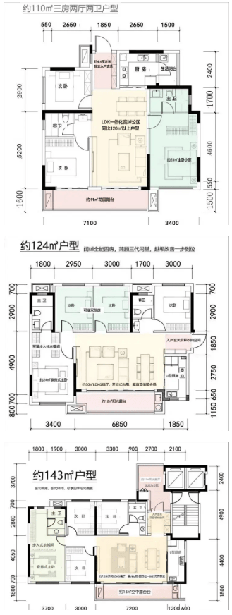 建面约110-143㎡小高层户型