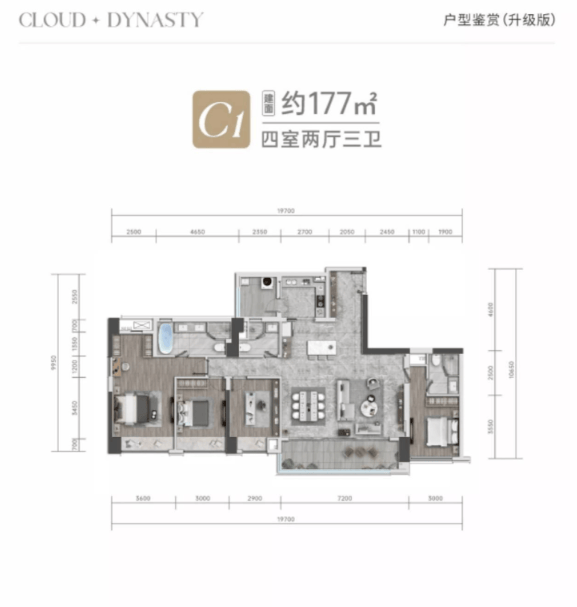 此面积段户型是项目的主力产品,定位为高端家庭的品质改善之选。户型设计强调功能性与舒适度的平衡,通常拥有开阔的横厅或巨幕景观阳台,主卧套房配置彰显尊崇。约