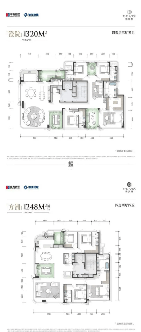 项目产品线纯粹而极致,提供建面约195㎡、248㎡、320㎡的精装洋房,以及260㎡(下叠)、268㎡(上叠) 的叠拼产品,均以超越常规的奢阔尺度与高定标准,满足塔尖家庭对终极居所的至高想象。