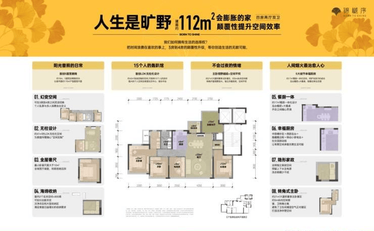 溯源幸福感哲学的灵感设计,匠心打造建面约112-175㎡魔方生长宅,从品质单身到两人一宠;从三口之家、二孩家庭到三代同堂,全生命周期生长户型,将家庭空间打造成24小时不间断的真人秀生活聚场。