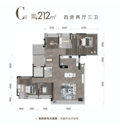 建面约212㎡ 舒适性乃至奢侈型四房