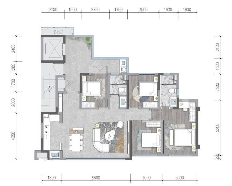 2. 建面约 133㎡四房:改善家庭 “满配之选”