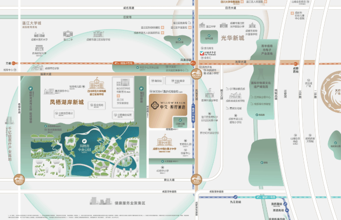 项目择址成都城西重点规划的凤栖·湖岸新城,这里是继东安湖、怡心湖之后,以约12.62平方公里宏大规划打造的产城湖样板区,发展潜力巨大。
