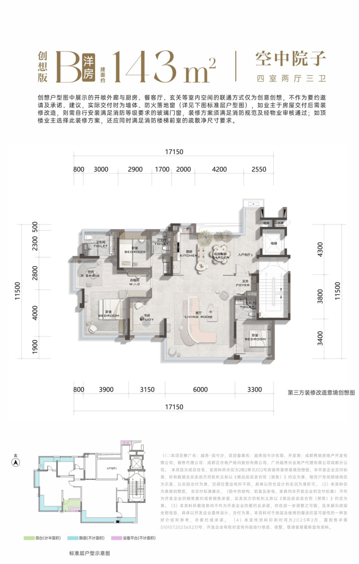 143㎡四房两厅三卫·空中庭院
