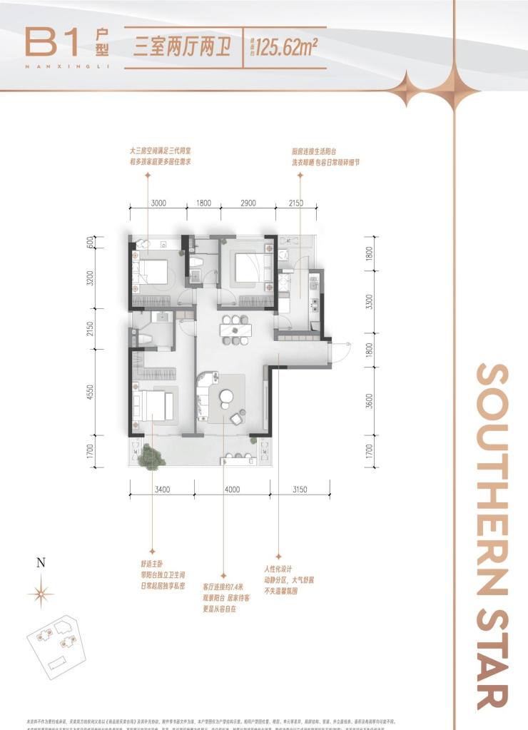 在售面积:118-126㎡(套三双卫)