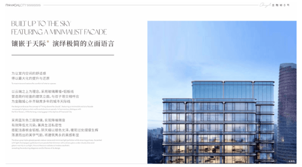 的超高层塔楼集群。其中,住宅产品仅占据一栋,通过极致的规划确保了圈层的绝对纯粹与视野的无可匹敌。
