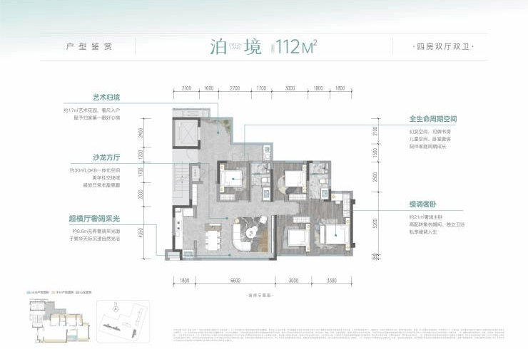 建面约133㎡的户型:拥有4房大双厅和奢阔主卧,幻变空间可根据家庭需求改造成书房、棋牌室等,满足家庭全生命周期的各种情景需求。