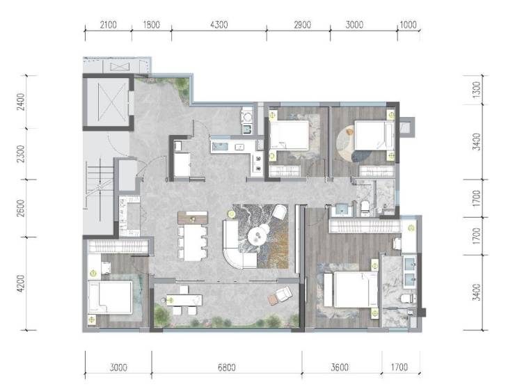 2. 建面约 133㎡四房:改善家庭 “满配之选”