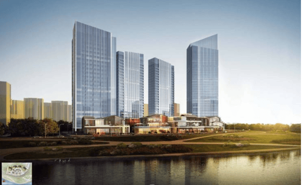 四栋江景高层与滨水商业街区
