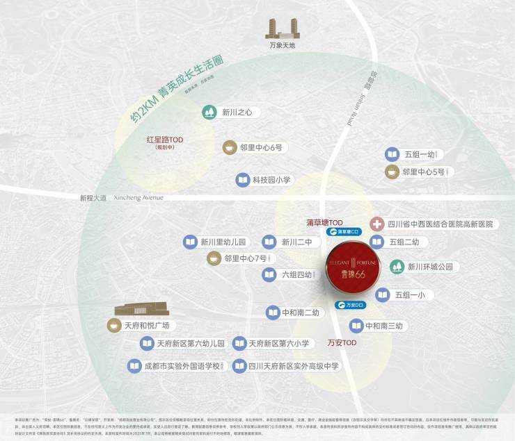约2km范围内全维商业配套:Ai创新中心一二期商业、新川之心商业、远大购物中心、海昌路商业街、天府和悦广场(山姆会员店)、社区缤纷生活市集