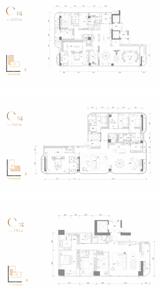 的云端大平层,以清水状态交付,为顶级客群预留充分的个性化定制空间。所有户型均以最大化城市景观视野为核心,以宏大尺度承载塔尖家族的居住、社交与收藏梦想。