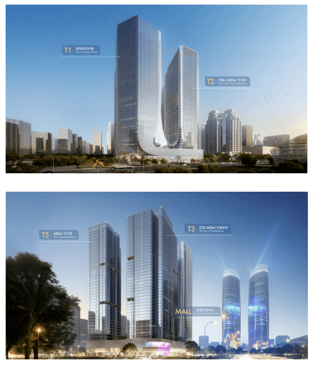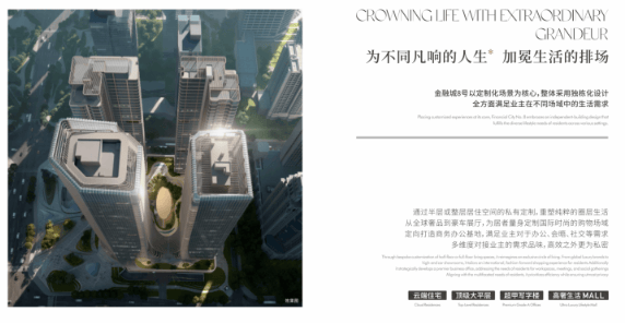 的超高层塔楼集群。其中,住宅产品仅占据一栋,通过极致的规划确保了圈层的绝对纯粹与视野的无可匹敌。