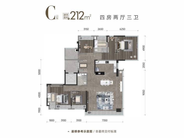 产品面积:精装四房129-212㎡