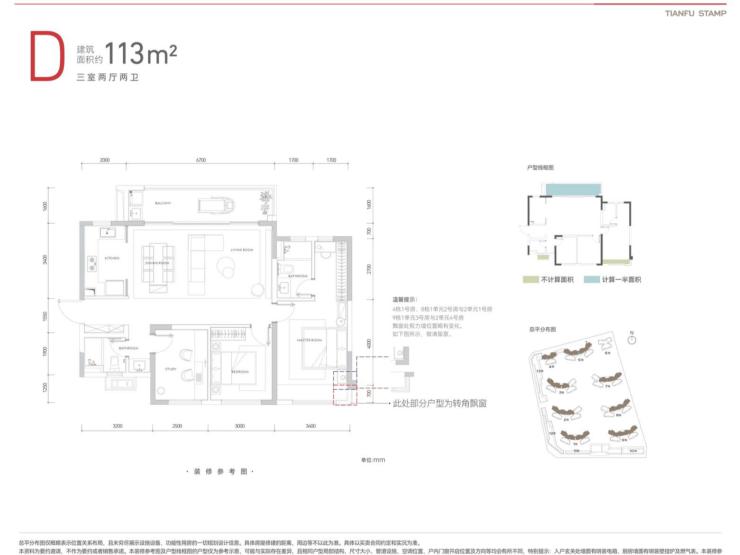 D户型:113㎡三房两厅双卫