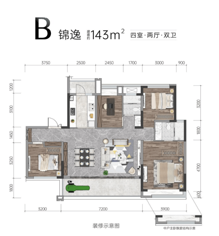 143㎡四室两厅双卫:二孩家庭的长久居所