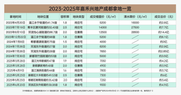 近年来集团持续蓬勃发展,2023年拿地面积、拿地金额均位列民营企业前茅,2024年更是拿下1-7月成都民营企业拿地榜单的第一名的荣誉。2025年嘉禾兴继续以成都为中心高歌猛进,不断拿地和开发,为更多家庭实现幸福生活的梦想。