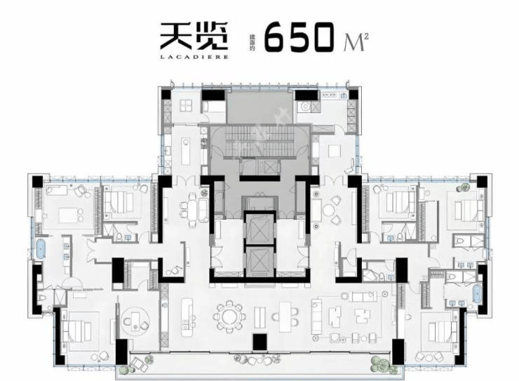 有建面约325㎡和建面约650㎡一层一户两个户型,3梯2户大平层,朝向东南,直面3450亩天府公园和天东CBD,层高3.5-3.6米。