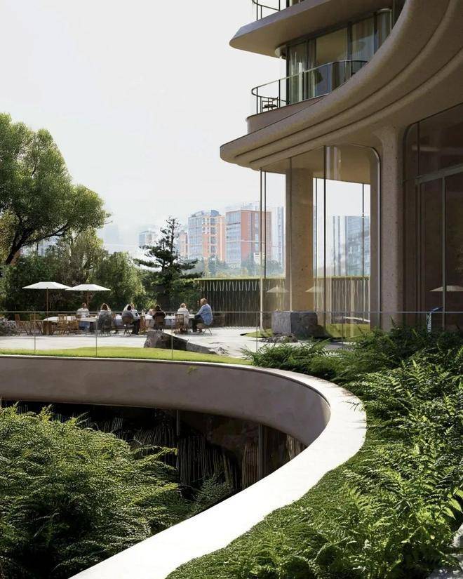 这一设计不仅提升了建筑的稳定性和安全性,更让绿意自架空层向上生长,通过空中花园垂直延伸,营造出一种仿佛置身于森林中的居住体验。