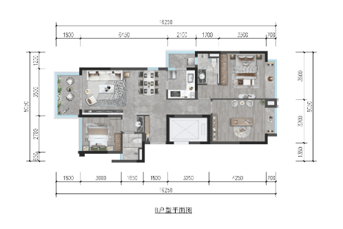 ,空间宽绰,可从容规划独立衣帽区,整体布局方正,功能分区清晰,适合追求一步到位品质生活的家庭。
