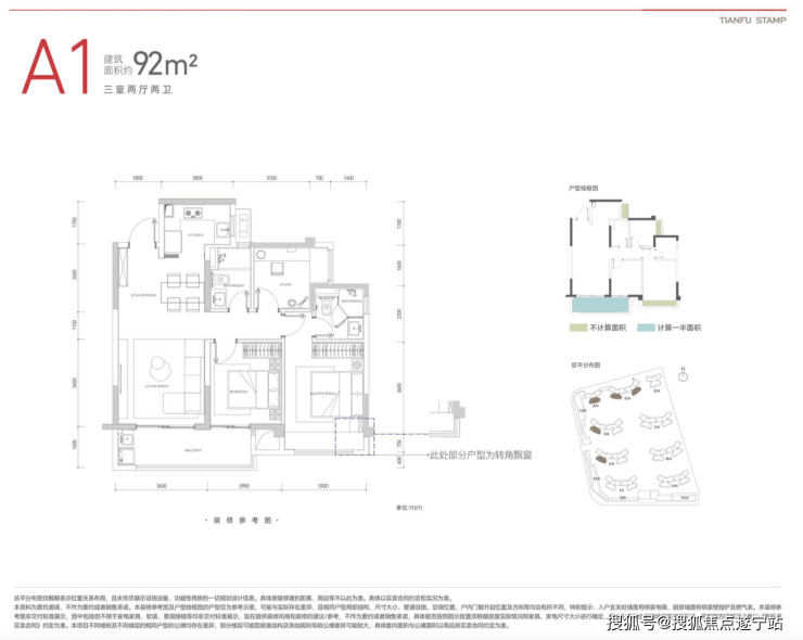 户型设计亮点突出:97㎡实现三房两厅双卫全能布局;9.8米南向面宽,三面采光确保通透性;3.6米客厅与3.3米主卧尺度考究;主卧及书房配备0.7米进深飘窗,拓展实用空间。