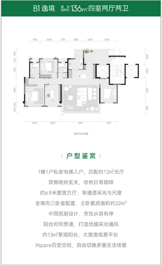 建面约136㎡/140㎡/143㎡ 宽境奢享四居室